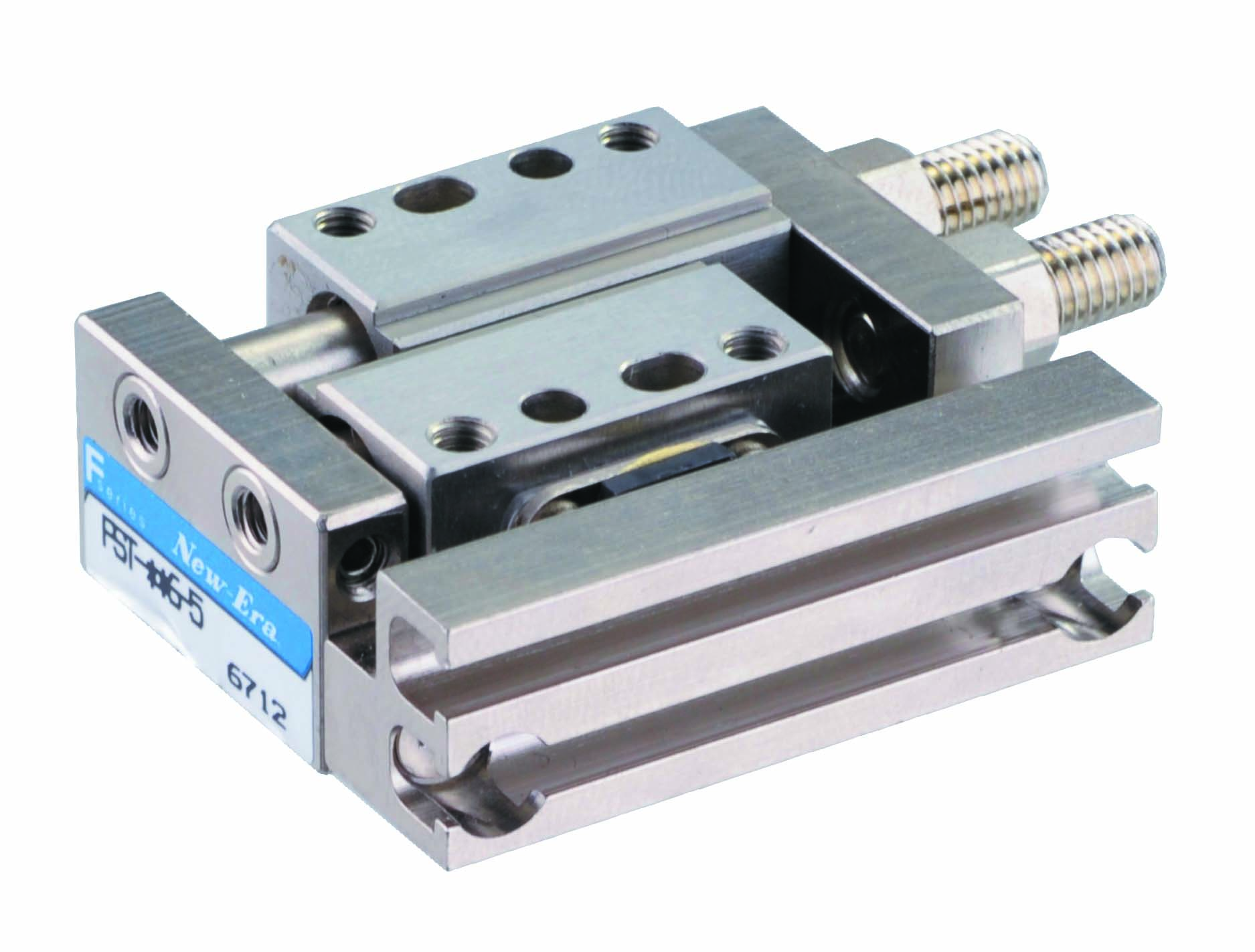 PST系列是透過並聯配置、同步動作的2個小型直線導軌上內置氣缸形成反向運動以用夾持或送料動作,可充分發揮直線導軌的高剛性、高精度特點,一次解決了傳統氣壓夾爪「剛性不足」、「全長尺寸過大」、「開閉行程短」的缺點。